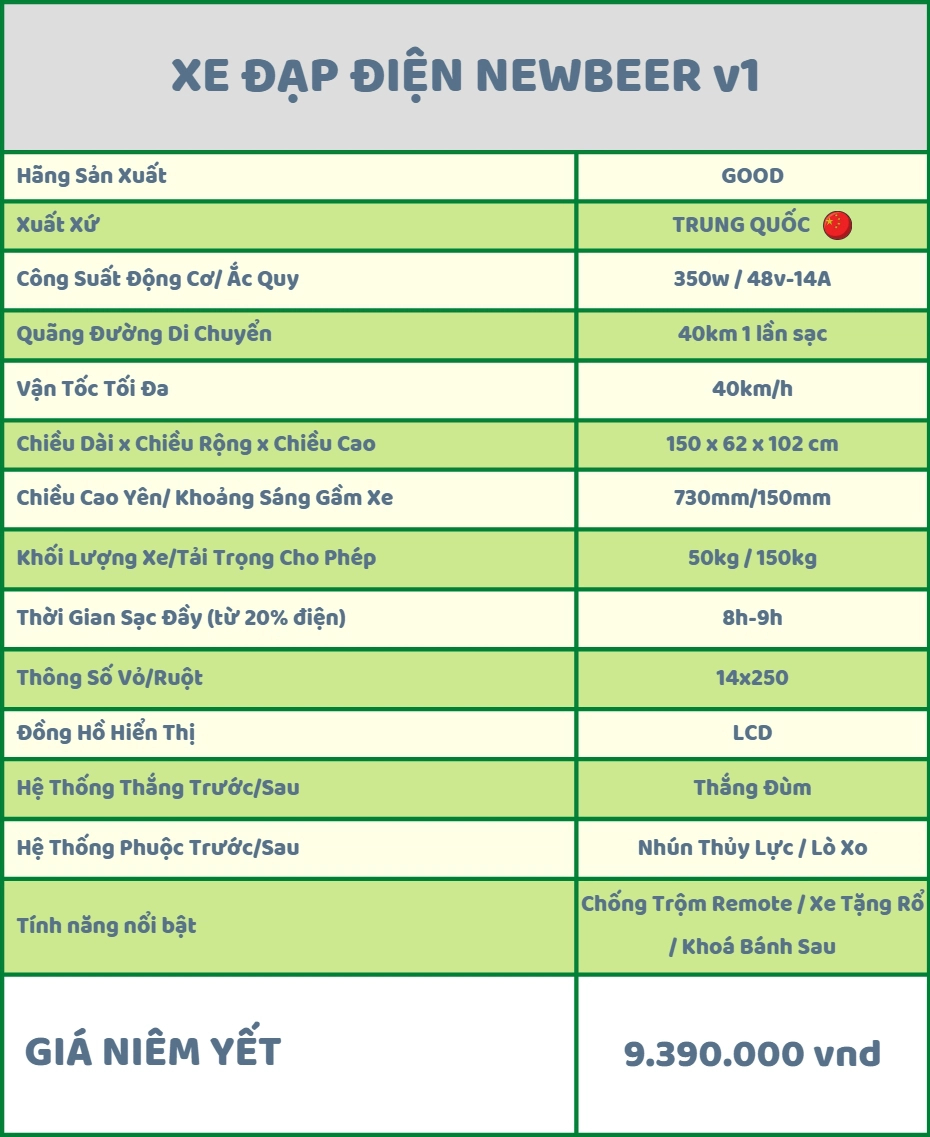 Nếu bạn đang tìm kiếm một chiếc xe đạp điện với giá cả hợp lý, xe đạp điện Newbeer V1 sẽ là sự lựa chọn hoàn hảo. Với giá thành cạnh tranh và các tính năng độc đáo, chiếc xe này đang trở thành lựa chọn hàng đầu của nhiều người tiêu dùng.