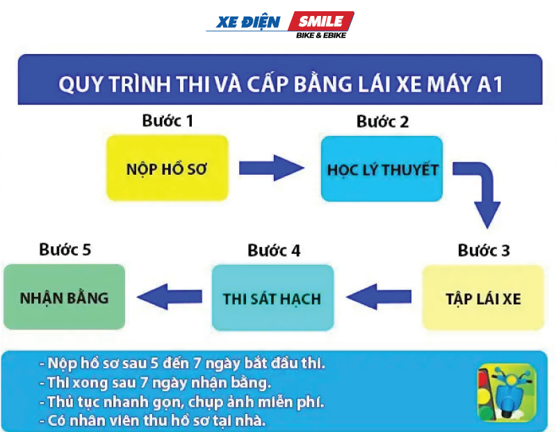 - Sau khi thi đỗ, sẽ được cấp giấy phép lái xe hạng A1 chính thức, có giá trị sử dụng theo quy định.