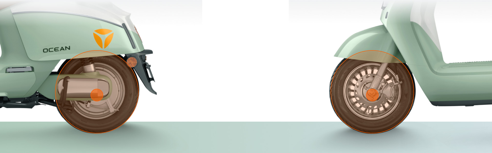 "Xe máy điện Yadea Ocean" được trang bị hệ thống phanh đĩa trước và phanh tang trống sau, giúp bạn dừng xe một cách an toàn và chính xác trong mọi tình huống.